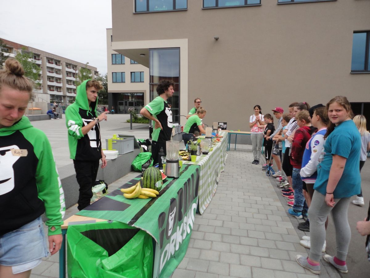 Wir GORILLA´s hatten mega fun in Weimar! Schönes Wetter, coole Kids, nette Lehrer und gut gelaunte Freestyle Pros haben heute über 100Kids gute Moves und gesunde Ernährung näher gebracht.“ Feedback der GORILLAs auf ihrem Blog unter www.deingorilla.de (http://www.deingorilla.de/6-tourstop-weimar/). Hier findet ihr auch weitere Bilder.