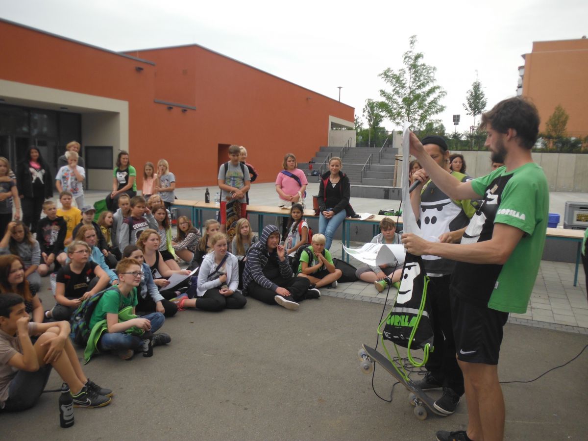 Die Schüler unserer 5. und 6. Klassen lernten bei Sportarten wie Breakdance, Longboard/Streetskate, Parcour, Slackline, Frisbee oder Freestyle Soccer mehr Uga-Uga Power und vor allem sich selbst kennen. Bei dem Tagesworkshops wurden nicht nur Fähigkeiten in neuen Freestylesportarten, sondern auch in Ernährung und nachhaltigem Konsum vermittelt. GORILLA ist ein Gesundheitsförderungsprogramm und wird von der GORILLA gGmbH und der Prof. Otto Beisheim Stiftung getragen. Mit ihrem Selbstverständnis stoßen die GORILLAs bei uns auf offene Türen: