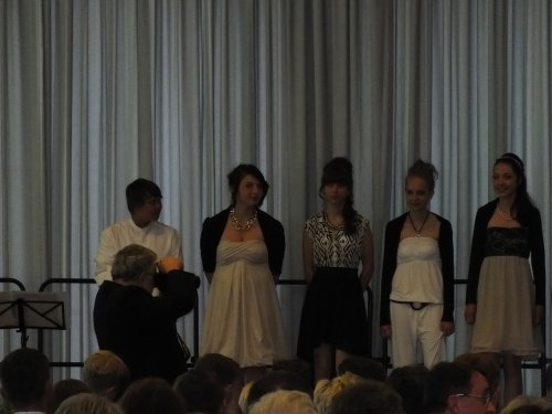 Schick gemacht hatten sie sich, unsere 8klässler. In Kleid oder Anzug zogen sie aufgeregt in die Weimarhalle ein. Die Feierstunde bestand aus einem bunten Programm aus Liedern, Rezitationen und einer tollen Festrede vom Polizeichef. Als dann eine Diaschow durchlief, die die Jugendweihlinge als Babys, als Schulkinder und jetzt zeigte, sah man in den Reihen der Eltern so manche Träne der Rührung.