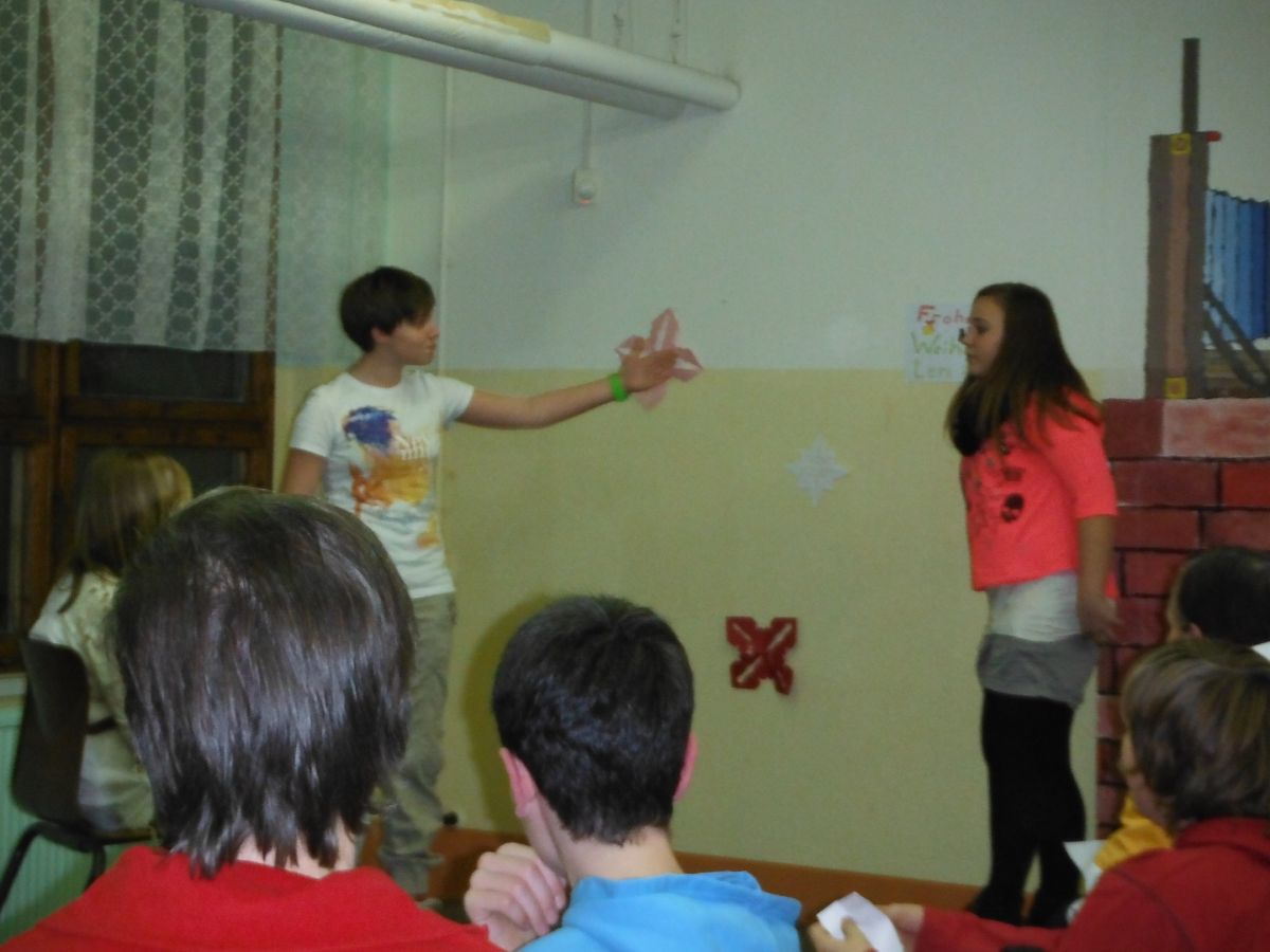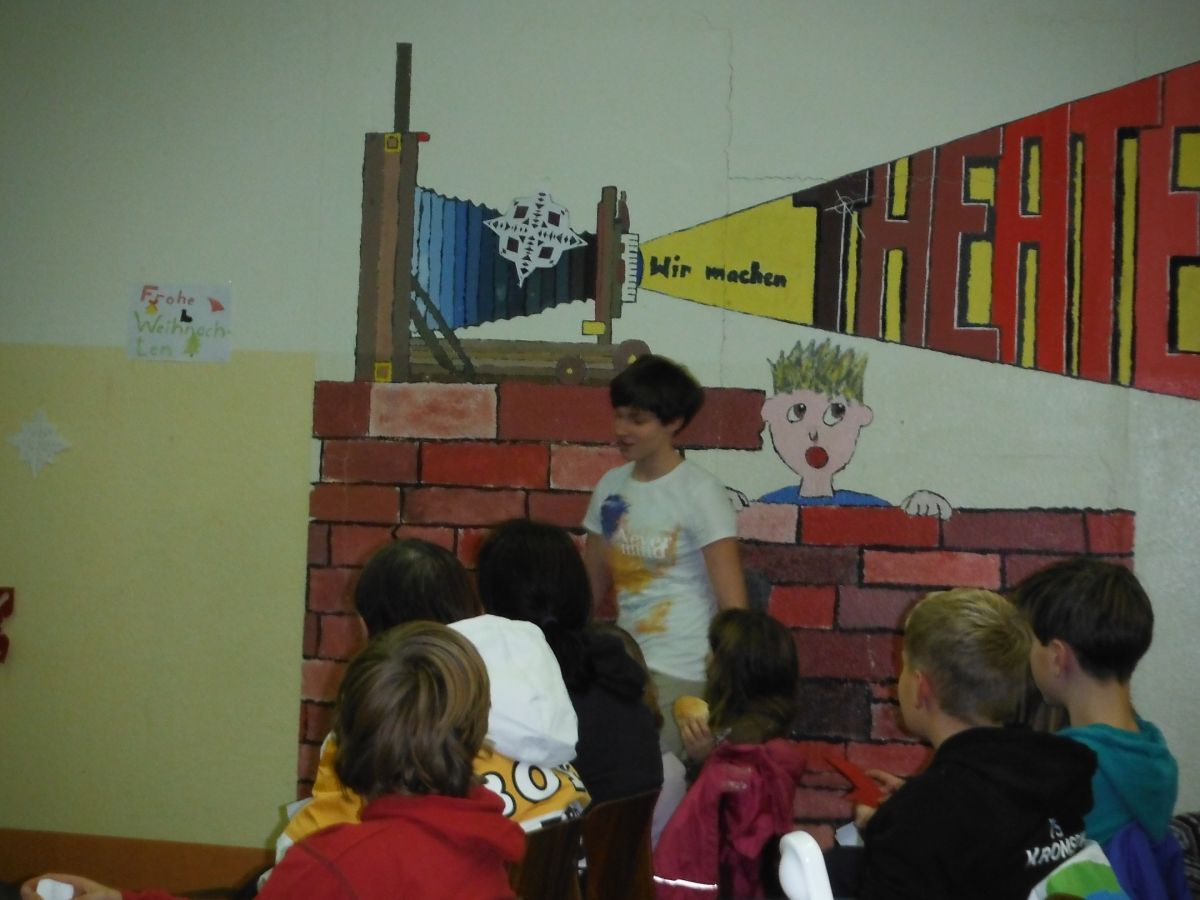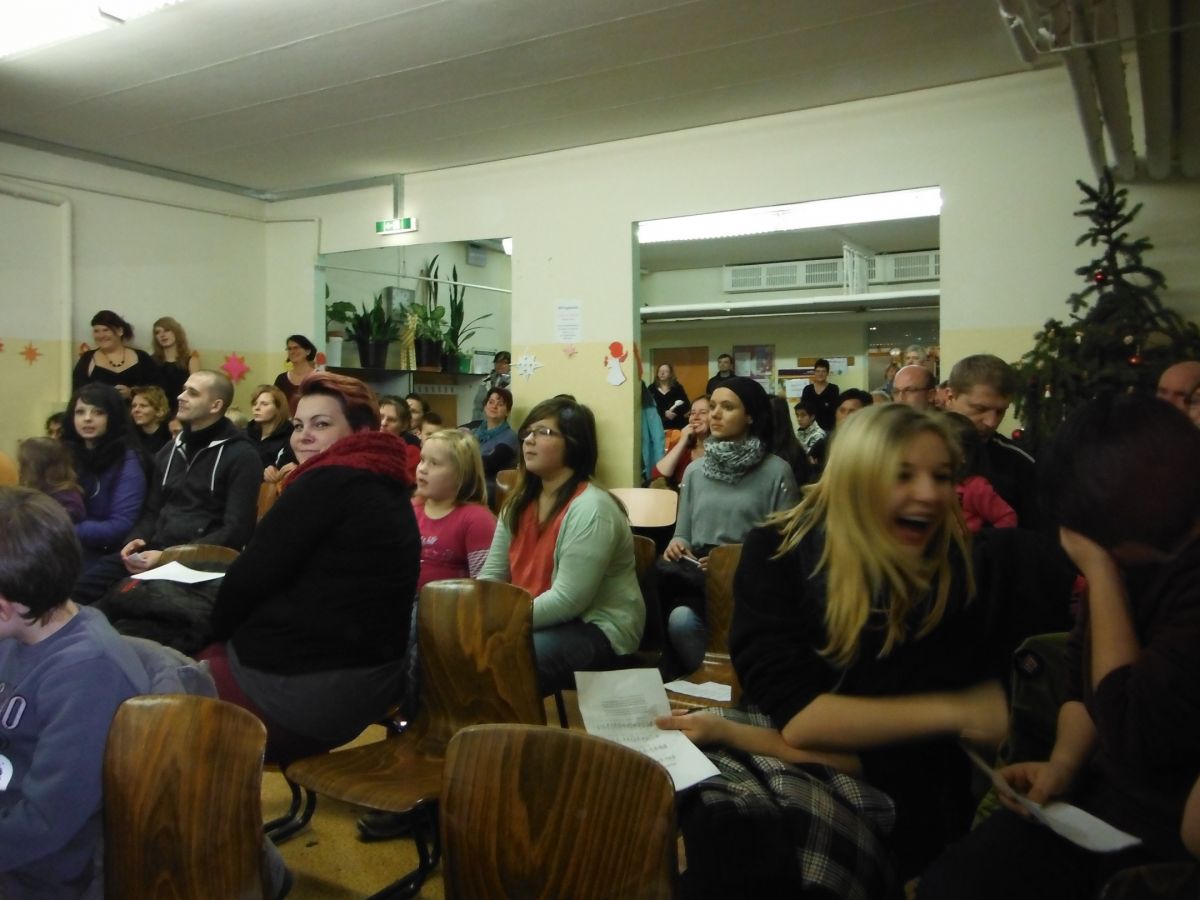 An der Aufführung 2013 waren etwa 50 Aktive beteiligt, die den Speiseraum der Schule in eine vorweihnachtliche Stimmung versetzten. Ein großes Dankeschön an Frau Schmidt, die nach einjähriger Pause (Elternzeit) mit den beieligten Schülerinnen und Schülern ein Programm gestaltete, dass allen Anwesenden viel Freude bereitet hat.