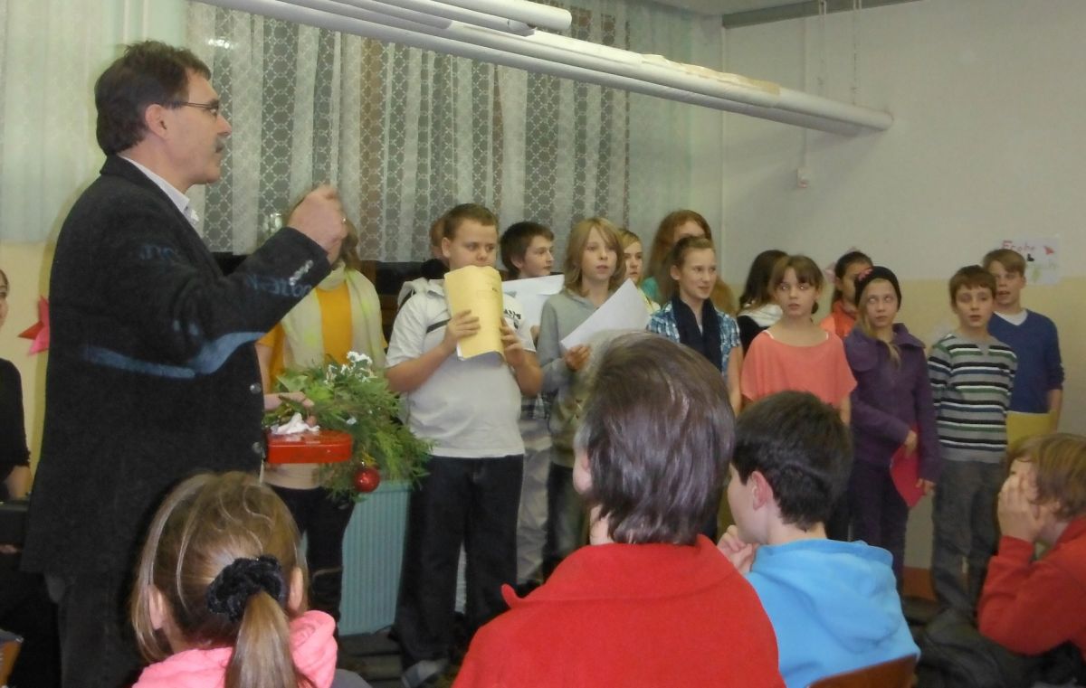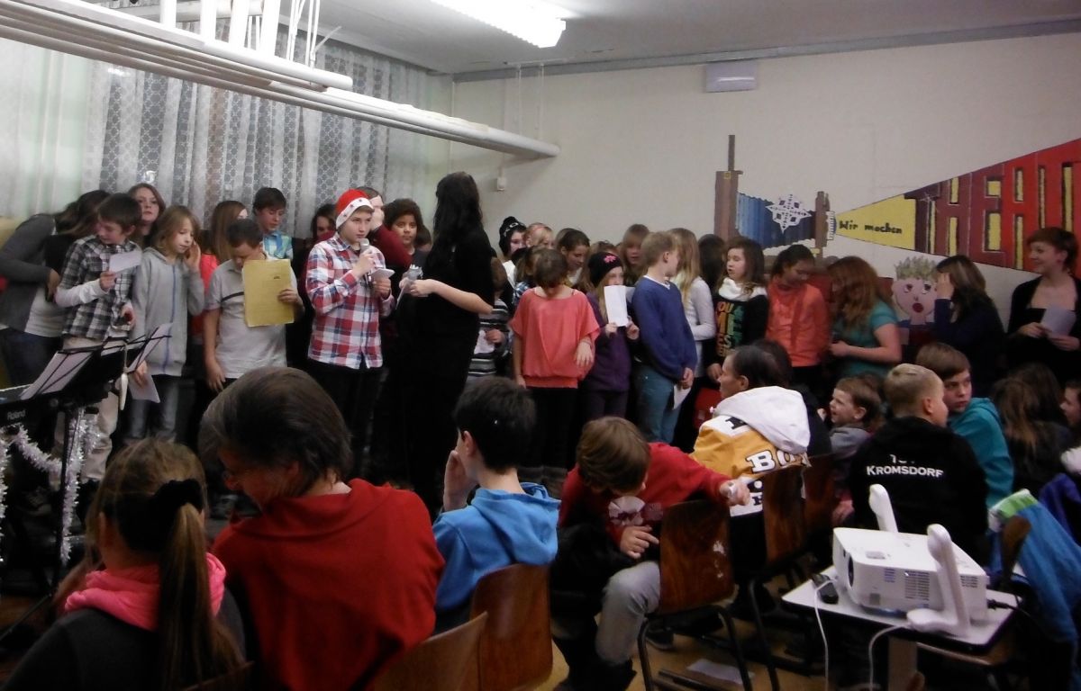 Ein letztes Mal fand, vor dem Auszug und der Sanierung, in der alten Schule das traditionelle Weihnachtssingen statt.