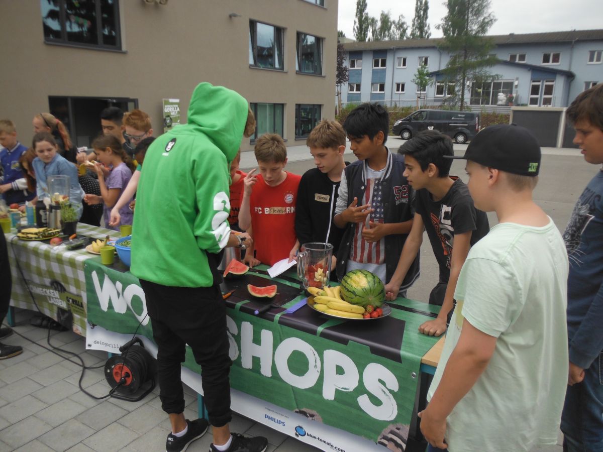 Die Schüler unserer 5. und 6. Klassen lernten bei Sportarten wie Breakdance, Longboard/Streetskate, Parcour, Slackline, Frisbee oder Freestyle Soccer mehr Uga-Uga Power und vor allem sich selbst kennen. Bei dem Tagesworkshops wurden nicht nur Fähigkeiten in neuen Freestylesportarten, sondern auch in Ernährung und nachhaltigem Konsum vermittelt. GORILLA ist ein Gesundheitsförderungsprogramm und wird von der GORILLA gGmbH und der Prof. Otto Beisheim Stiftung getragen. Mit ihrem Selbstverständnis stoßen die GORILLAs bei uns auf offene Türen: