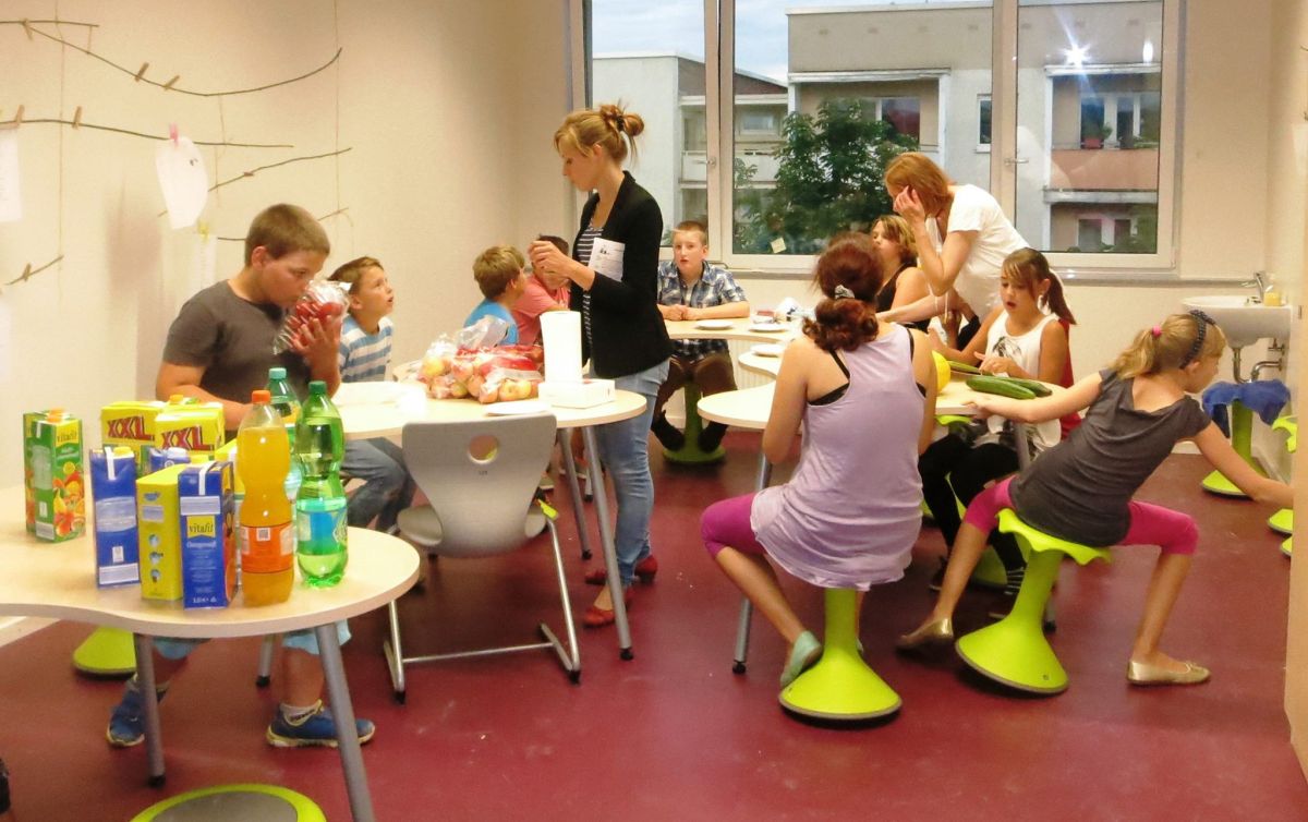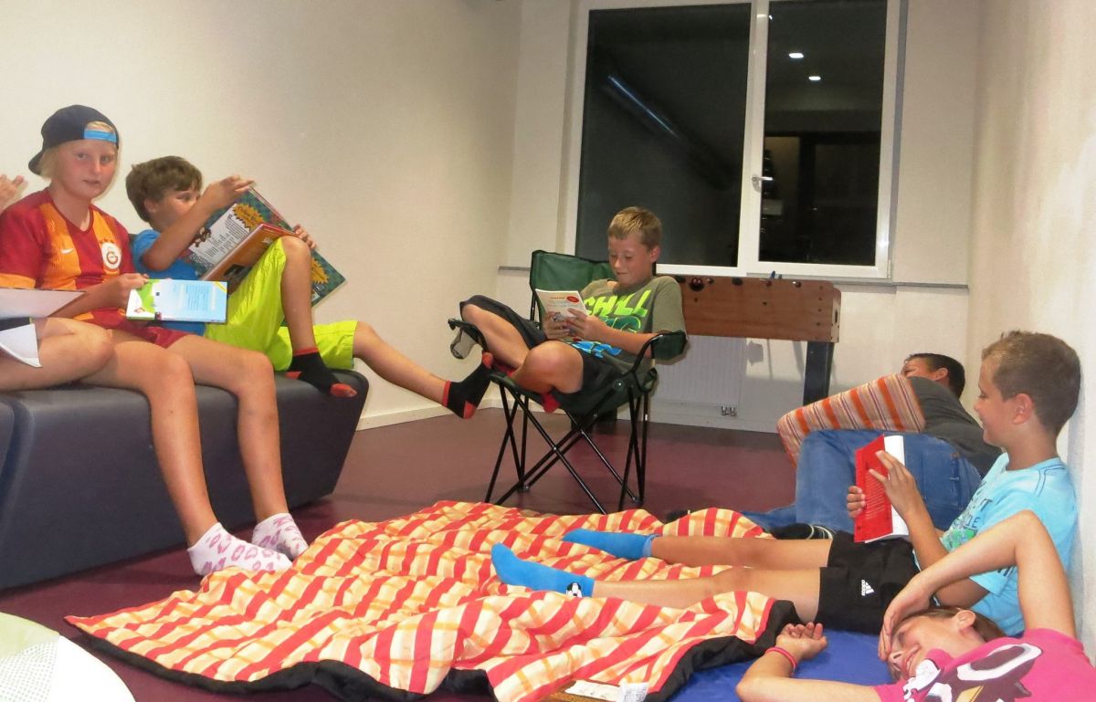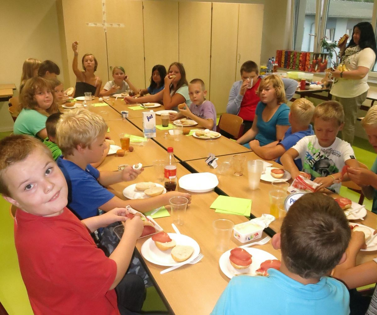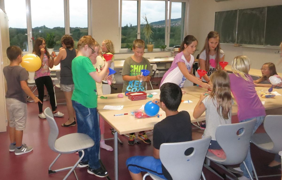 Nach der feierlichen Eröffnung des neuen Gebäudes ging es zunächst einmal in die „Grüne Lernoase“, den frisch gemalerten Klassenzimmern der 5. Klassen. Dort lernten die Schüler und Schülerinnen ihre Klassenlehrerinnen Frau Püschel, Frau Frießner und Frau Kastner kennen. Die nächsten Tage standen unter dem Motto „Wir werden ein gutes Team“ und so stellte sich Frau Gaida, die Schulsozialpädagogin an unserer Schule, mit Vertrauensspielen vor, erstellten die Kinder Lapbooks und Steckbriefe, erkundeten zusammen mit der 10. Klasse das Schulhaus in einer verrückten Rallye und besuchten das Kinderhaus Weimar. Selbstverständlich wurden auch Klassenregeln erarbeitet und Klassenämter verteilt. Wir haben uns fest vorgenommen: „Wir sind alle unterschiedlich, aber in dieser Schule halten wir zusammen!“ So sprachen wir darüber, dass wir uns alle akzeptieren wollen, egal welcher Herkunft. Am Donnerstag trafen sich die 5. Klassen in der Stadt und fuhren gemeinsam zum Zirkus „Tasifan“. In fünf Workshopgruppen lernten sie das Jonglieren, führten akrobatische Übungen aus, turnten am Trapez, bauten Pyramiden und schauspielerten wie professionelle Clowns mit eigens erfundener Clownssprache. Am Abend stand dann das Highlight der Woche bevor: Eine Lesenacht mit Übernachtung in der Schule! Die Kinder rückten um 19 Uhr mit Luftmatratzen, Isomatten, Schlafsäcken und Kuscheltieren in ihren Klassenzimmern an, bereiteten Snacks und ihre Schlafräume vor, bastelten Anti-Stressbälle, lösten Rätsel rund um das Thema Lesen und dann versammelten sie sich in vier Leseräumen. Im Märchenraum gab es Geschichten der Gebrüder Grimm, im Krimiraum lösten sie knifflige Rätsel, im Gruselraum spukte es und in der Selbstlesegruppe stellten sie ihr eigenes Buch vor. Ein Gute-Nacht-Film verursachte nur bei wenigen Kindern müde Augen J! In den Schlafräumen lasen sie noch bis spät in die Nacht, von Nachtruhe war erst weit nach Mitternacht eine Spur. Am Freitagmorgen wurden die Schlafräume wieder in Klassenräume umgewandelt und ein gemütliches Frühstück rundete die Kennlernwoche ab. Jetzt kann das neue Schuljahr in drei guten Teams beginnen.